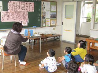 今日〔10月27日(木)〕の業間時間に保護者の方に来ていただいて読み聞かせを行いました。