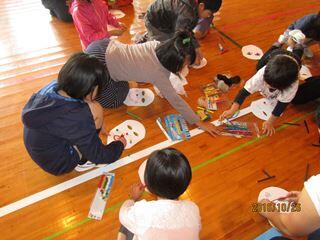 最後には、そのお面をかぶって教室を回り、お菓子をもらいました。