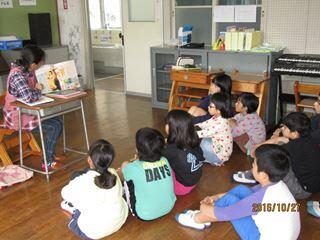 今日〔10月27日(木)〕の業間時間に保護者の方に来ていただいて読み聞かせを行いました。
