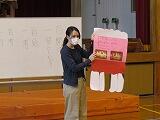 授業始めの永久歯に関するクイズでは、「①一生使う歯である」「②20歳ぐらいになったら生えかわる」「③60歳ぐらいになったら生えかわる」という3択でしたが、全員不正解で、みんな答えを聞いて驚いていました。