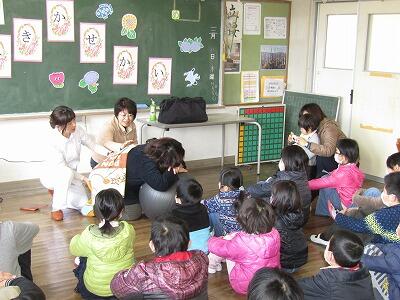 今回は、「命」をテーマにした読み聞かせ会で、お母さん達の「出産シーン」から始まりました。
