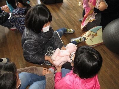 そのあとは、原寸大の赤ちゃんの人形をだっこして重さや形を体感したりもしました。