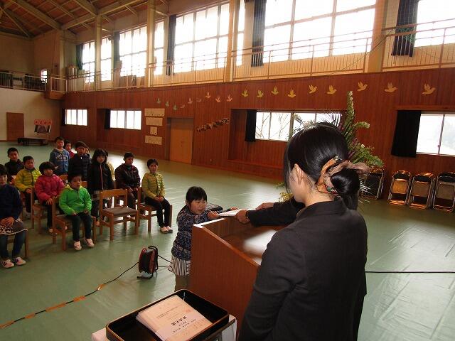 そのあと、1年生の男児と5年生の女児が1年間がんばったことの作文発表をしました。