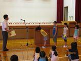 最後に表彰がありました。4人の子どもたちがそろばんや暗算の昇級試験に合格しました。(おめでとう!)