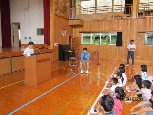 はじめに2名の児童が2学期がんばることの発表をしました。