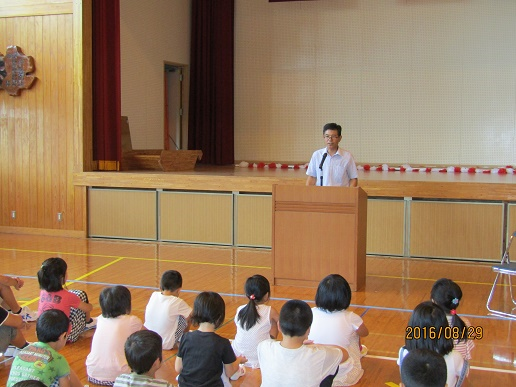 今日は、校長先生が出張でいらっしゃらなかったので教頭先生が話をされました。