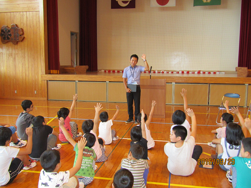 はじめに作文発表についてコメントされた後、校長先生からの宿題(夏休みがんばったこと)の確認をされました。