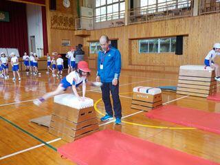 12月2日(金)に体育振興指導教諭(スーパーティチャー)の村中田博先生に来ていただき、全学年を対象に体育の跳び箱遊び・運動の授業を行っていただきました。