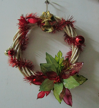 それを使ってクリスマスリースを作ったら、こんな作品ができあがりました。