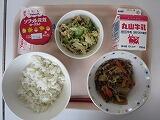 今日の給食は、「麦ごはん、牛乳、さつまいもの煮物、和風大根サラダ」で、低学年が畑で育てたさつまいもを使ったメニューでした。とっても甘いさつまいもでした。