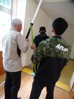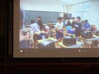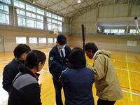 子どもたちが下校した後も、椎葉派出所のお二方とともに、訓練の様子を撮影した映像を見ながら、可能な対応やできる準備について研修を行いました。