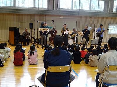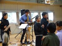 11月12日(水)の3・4校時に宮崎ジャズコネクションの皆さんに来校いただき、音楽(ジャズ)の鑑賞教室を行いました。管楽器やドラムセクションが織りなすスタンダードナンバーや子どもたちの好きなアニメソングやJ-POP等、素晴らしい音色が響きました。