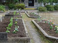 本校の児童が、朝の環境タイムで植えた草花も、日々世話をしてくれているおかげで、どの花壇も確実に成長しているようです。また、本校の用務員の先生が、平家まつりでいただいた花を飾り、また種や苗から次なる花の準備をしてくださっています。