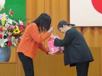 保護者の皆さんにおかれては、低学年から最後の6年生まで大きな声での声援をしてくださいました。その姿を見ていた子どもたち。子どもと保護者の素晴らしき姿は、閉会式終了後に。子どもがきちんと感謝の意を心を込めて伝え、保護者は受け取ってくださった光景が下の写真です。