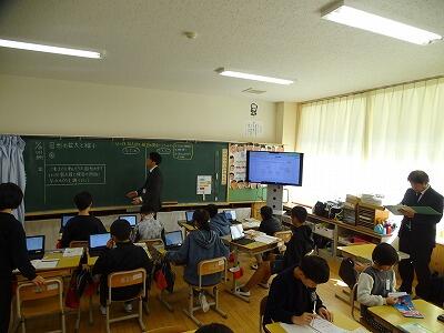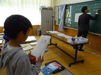 さて、先々週、先週と村内の研修会だけでなく、本校独自に研究授業を行っています。11月20日(木)に、北部教育事務所指導主事にも来校いただき、5・6年複式の算数の授業における研究授業を行いました。