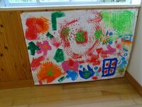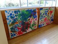 1年生の廊下には、カラフルかつ大胆な色使い・色の強弱が随所に見られ、“芸術は、爆発だー”的な「おもしろみ」があります。これは、11月に行われた1年の集合学習で制作したもので、威厳を放っています。