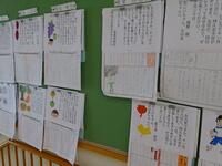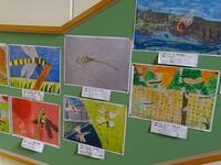 東階段には、3・4年、5・6年の作品が彩ります。国語の学習で作られた作文や図工の秋をモチーフとした作品、学習した内容をまとめた学級新聞等が掲示されています。
