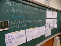 これまでに、何度も校内での主題研において指導案検討を重ねる中で、「複式指導の効果的な在り方」「本時・本単元をとおして、学習者がチャレンジできる場面の創出」「教えあい・学びあい等の交流の意義」「直接・間接指導における授業者の支援の在り方とタイムマネジメント」「本時にねらった学習内容の評価」等、多岐にわたり協議・検討し、この日を迎えました。