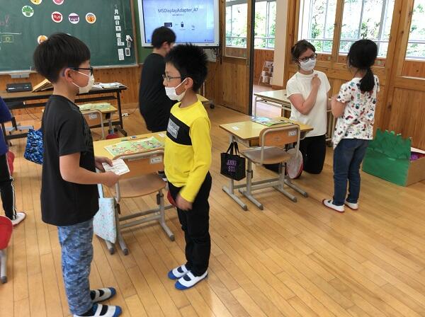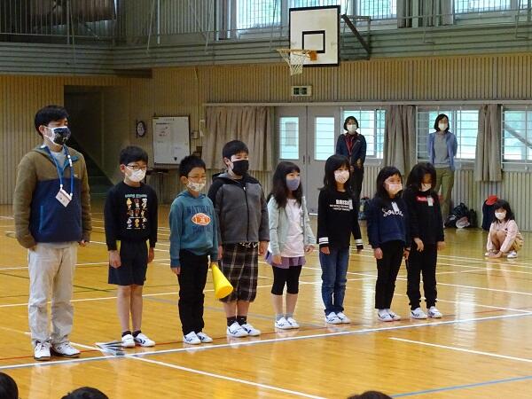 全児童が出席した中、いわゆる「3密」に留意しながら工夫して進行しました。