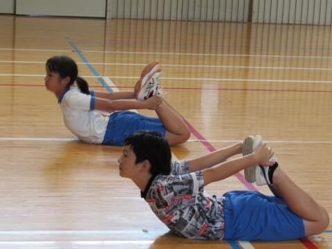 【膝を柔らかく使って(5年生)】 【運営側も大忙し(先生はBGM検索)】