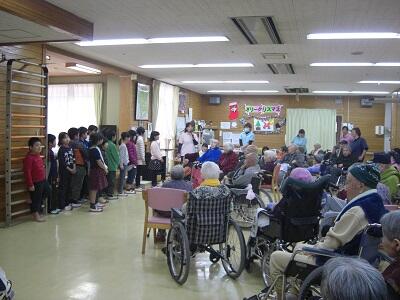 平寿園では、入所されている高齢者の方々に子どもたちから歌や紙芝居の発表をプレゼントしたり、一緒に風船バレーなどのレクリエーションをしたりして楽しく過ごしました。