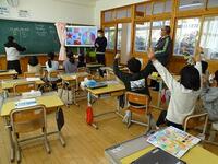 さて、本日(12月8日)は椎葉中学校から、英語科の先生が「異校種間交流」のために来校されました。オリエンテーションの後に、授業参観・そして2時間にわたってALTや学級担任と一緒に外国語科の授業をしてくださいました。