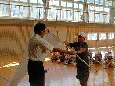 9月1日(月)の朝の時間は、全校児童・先生方による結団式を行いました。