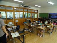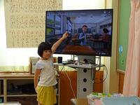 でも、ユニット学習初めての1年生にとって、画面に映る友だちが気になって仕方ない様子。何度も大型モニターを振り返って見ていました。