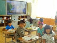 1年生の授業の様子を見に行くと、2学期から大河内小とユニット学習における道徳がスタートしていました。画面上に映る友だちと一緒になって考えている様子がうかがえます。