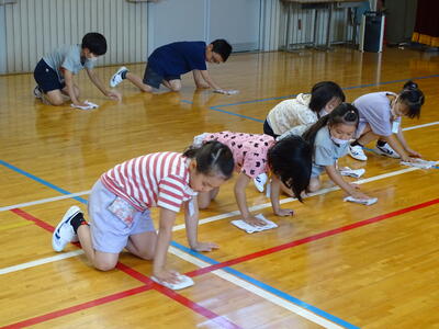 実は、昨日もう一つコツコツと準備をしてくれていた行事がありました。椎葉小全員で普段の掃除について確認した「環境集会」です。委員会の代表が進行しながら、清掃のコツ(ぞうきんのかけ方等)を確認したり、清掃の意味について考えたりする貴重な時間でした。キーワードは「と(とりかかり)・む(無言掃除)・す(隅々まで)・じ(時間いっぱい)・あ(あとしまつ)」。これまで同様、日々の清掃で生かしてほしいものです。