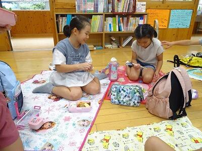 その後は、お弁当。これまたおいしそうに頬張っている児童の多いこと。5・6年生も、この日はお弁当でした。