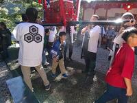 太鼓や笛に合わせて子どもたちは神輿を担ぎ「わっしょい・わっしょい」のかけ声に合わせ、途中休憩を挟みながら六弥太から厳島神社までの距離を練り歩きました。