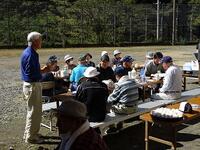 代表の進行で、保護者のみなさんとあいさつをし、注意事項などを確認してから、芋掘りを開始しました。