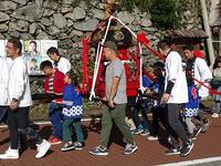 太鼓や笛に合わせて子どもたちは神輿を担ぎ「わっしょい・わっしょい」のかけ声に合わせ、途中休憩を挟みながら六弥太から厳島神社までの距離を練り歩きました。