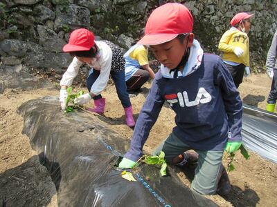 PTA生活指導部の皆さんのご支援をいただき、今年はお借りしている土地で「さつまいも作り」をさせてもらうことになりました。