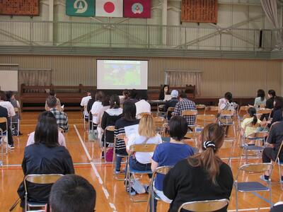 まもなく夏休み。本校はPTAの皆さんが、子供たちのためにプール開放をしてくれています。それに先立ち、昨晩、恒例の救急法講習会が開催されました。講師は総務課防災グループの職員の方々です。お世話になります!