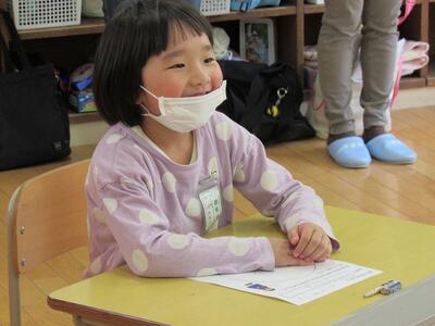 算数のお勉強。いつもと違って大勢の友達が見ているから、ちょっぴり緊張します。