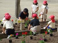 用務員の先生や生徒指導部の先生が苗や道具の準備してくださり、全校児童による花の苗植えを行いました。ありがとうございます。
