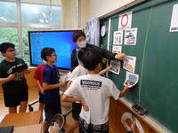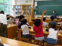 また3・4年生では、地域のお二方をお招きして、「椎葉の方言」についてお話していただきました。今回の学習内容は、お二人に椎葉弁でお話をしてもらい、子どもたちがその会話を解読していく内容。みんなで協力しながら椎葉について語っている様子は、今と昔を結ぶ良い光景に見えました。