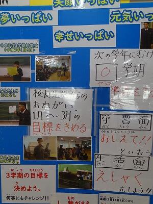 最初に4年代表児童による発表があり、3学期にチャレンジしたい3つの目標について堂々と語ってくれました。