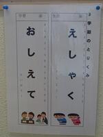 校長先生のお話の中に『「えしゃく」「おしえて」で3学期を、次年度の0学期にする、それをチャレンジしよう!』という内容でした。校長先生自ら、キャンペーンに係る掲示物を制作し、校内のあちらこちらに掲示してくださいました。