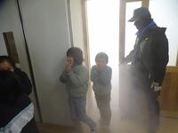 今回の訓練では、校舎からの避難訓練、車両見学、煙霧避難訓練の3つの内容でした。各教室からの避難では「お・か・し・も・て」のかけ声のもと、2分半での全員避難を完了できました。