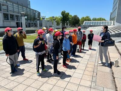 4月27日(木)に3年生の児童が、学級の先生と一緒に「まち探検」に行きました。雨天のため、当初の計画から遅れること2日・・・準備万端でいざ出発!!