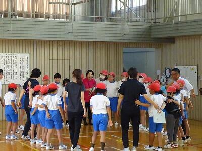9月5日(木)から全校体育が始まりました。朝の時間から1時間目の涼しい時間帯に行いました。