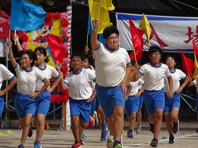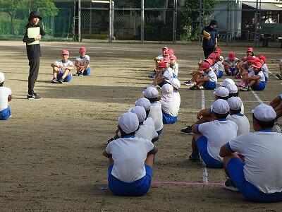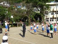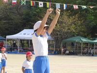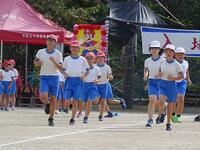 今回の内容は行進・ラジオ体操・エール交換・役員入場等で、体育主任の先生の話や指示をよく聞いて、きびきびとした姿が見られました。