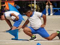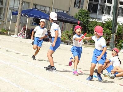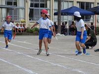 日中は、熱中症に対する警戒が必要なくらい晴天が広がる椎葉村です。どの学年も気温が上がる前の午前中のうちに、運動会の練習に取り組んでいます。特に、徒競走やリレーの練習では、気迫に満ちた表情で練習に取り組む児童の姿が見られます。