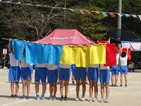 進行は児童主体で、2名の団長が自己紹介をし、色決め行って赤・白が決定しました。その後、校長先生から団長に団旗を授与していただきました。