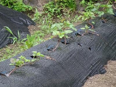 さて、ちょうど1か月前に児童とP生活指導部、先生方で植えたイモの苗。雨とここ数日の高い気温のおかげでしょうか、気のせいか一気に葉が大きく広がりつつあるようです。まさに雨にも負けずです。