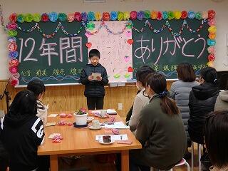 「『さよなら』は別れの言葉じゃなくて、再び会うための遠い約束」という歌詞もあります。5名の先生方へ、ありがとうございました。4名の友達へ、椎葉小での学びを、次の学校での活躍に是非活かしてください。そして、また会いましょう。