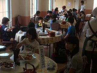 スープやカツやシュウマイなど、この他にもまだまだ料理が出てきました。みんな、おなかいっぱい食べています